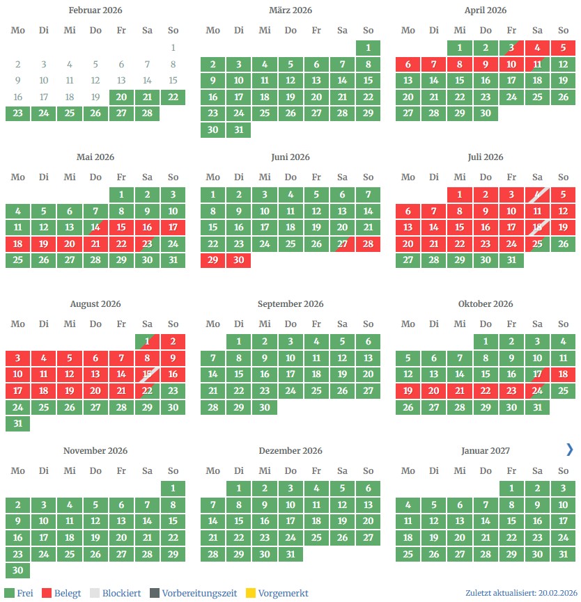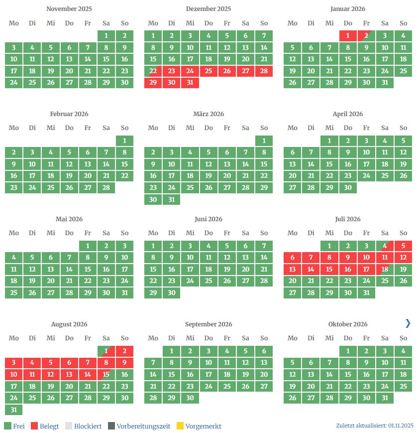 Die rot hinterlegten Tage sind bereits belegt. Zum vergrößern klicken Sie bitte in das Bild.